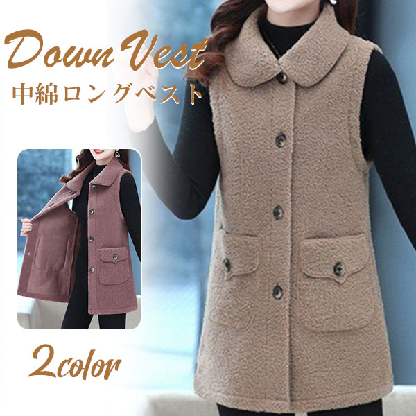 ■ボアベスト レディース ロングコート アウター 中綿 ノースリーブ 前開き 中綿ジャケット ジレ 防寒 羽織り 厚手 秋冬 おしゃれ あったか