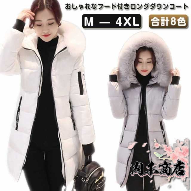 ダウンコート レディース ロング 体型カバー Aライン フード フェイクファー ファーフード スタンドカラー もこもこフード アウター コート 秋 冬 華奢見え 20代 30代 40代 50代 60代