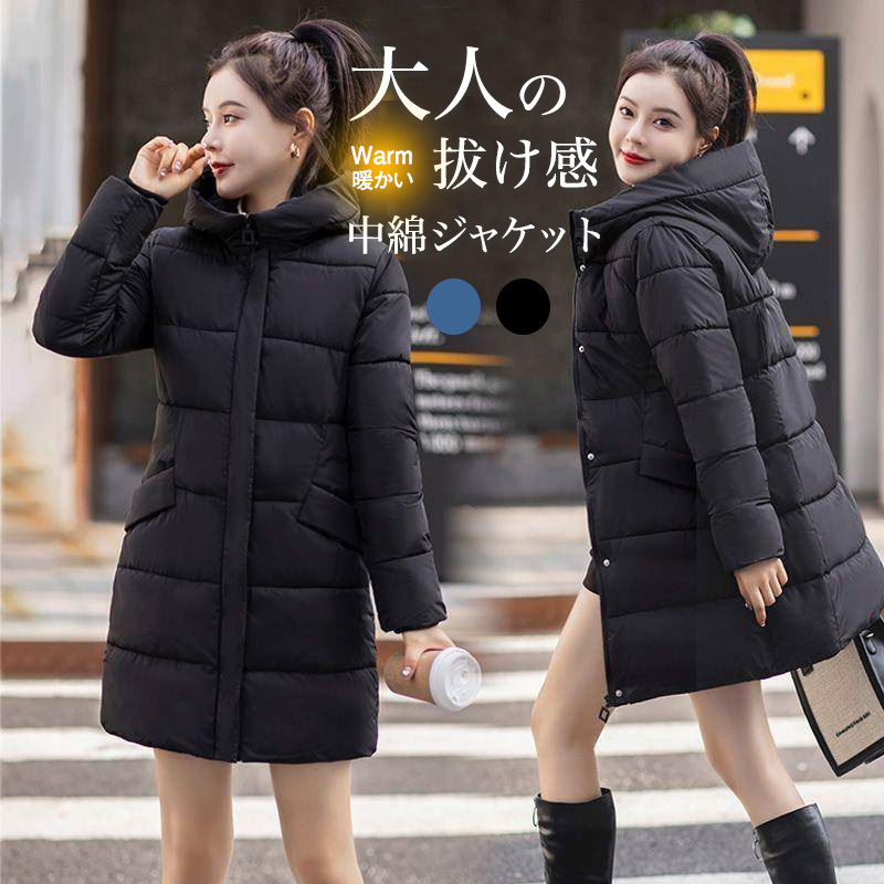 ■中綿ジャケット レディース ロングコート フード付き 中綿コート 厚手 暖かい ダウンジャケット 体型カバー 秋冬 アウター 軽量