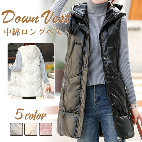 ■ロングベスト レディース ロングコート アウター 中綿 ノースリーブ 前開き フードなし ジレ 防寒 羽織り 厚手 秋冬 おしゃれ あったか