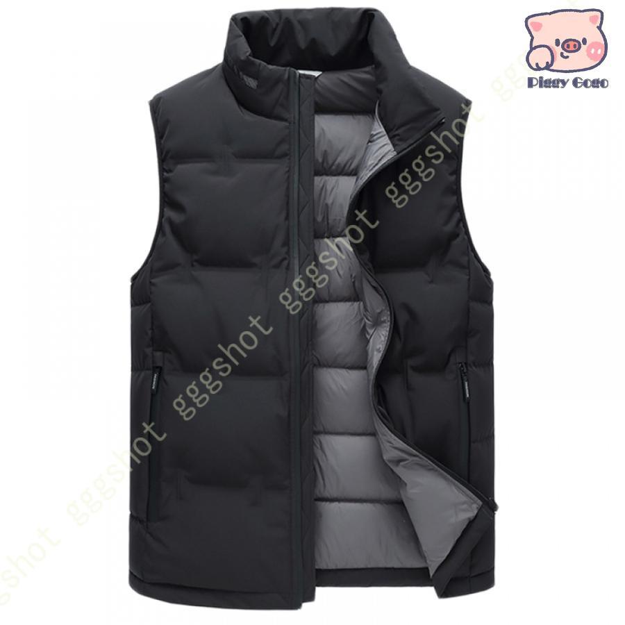 ■ダウンベスト メンズ 中綿ベスト 防寒コート 秋 冬 春 防風 アウトドア スタンドカラー シンプル 光沢感 アウター ジップアップ ポケット