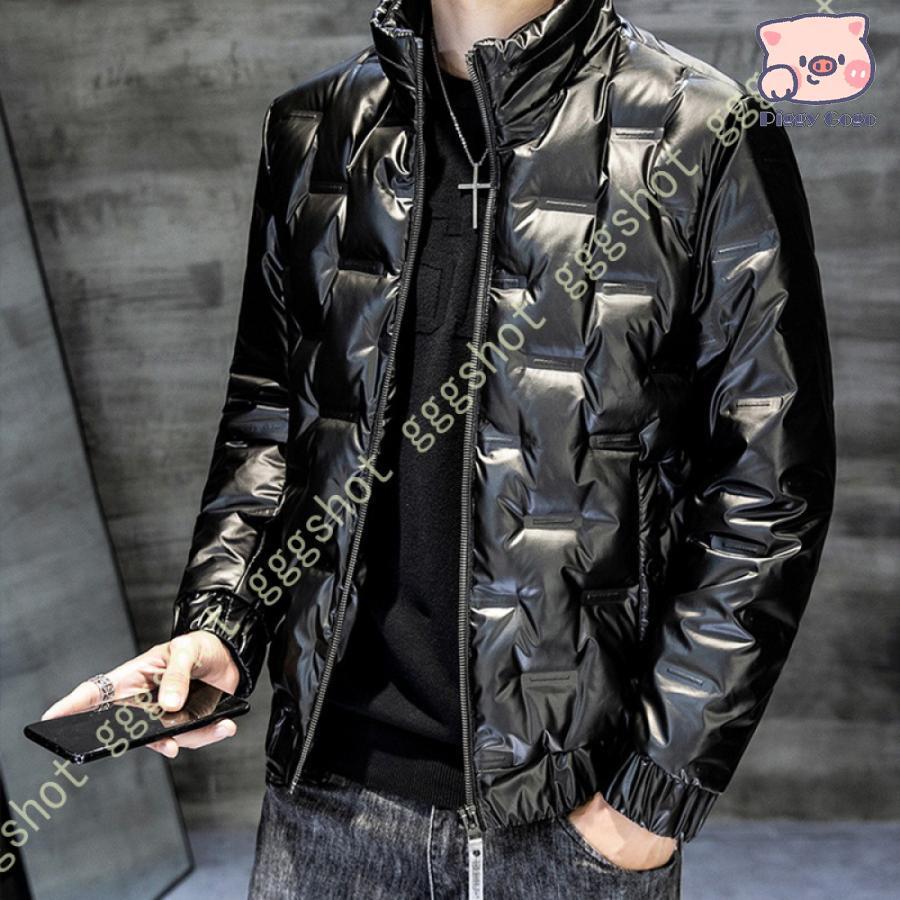 ■メンズ ダウンジャケット ダウンコート 中綿 ジャンパー 男性 ジップアップ 防寒着 アウター スタンドカラー 光沢感 防風 軽量 冬服 冬物