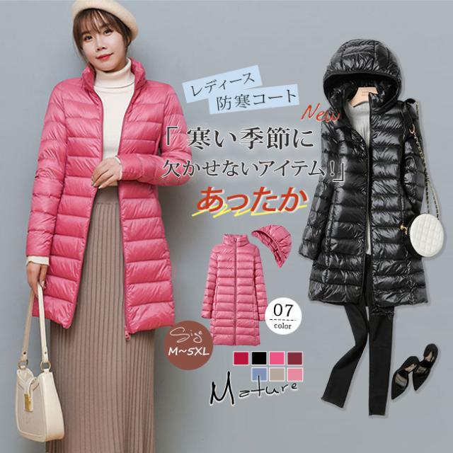■ダウンジャケット レディース ブルゾン ライトダウン ライトアウター スタンドカラー 軽量 ロング丈ダウンコート秋冬 防寒 大きいサイズ