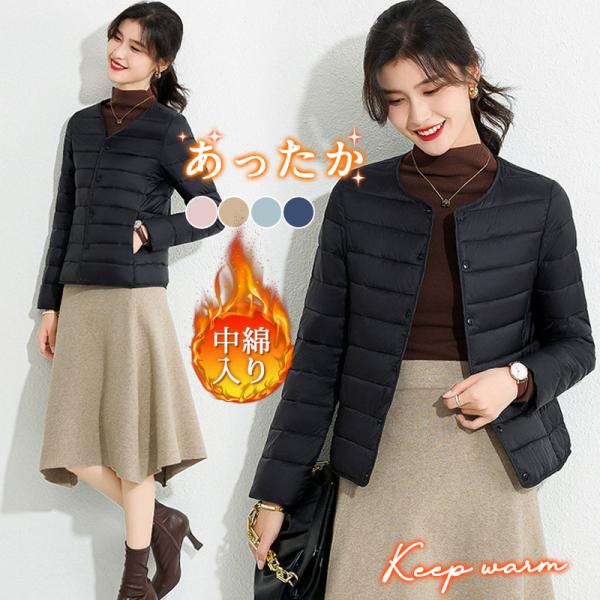 ■ダウンコート レディース 秋冬 中綿コート インナー ノーカラー ノーカラー ショット 暖かい 軽い アウター 防寒対策 保温 厚手 防風 ジ