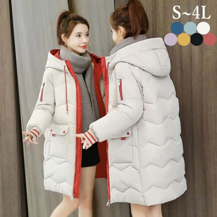 スタンドカラー 中綿コート ジャケット 綿入れ フード付 ダウン コート レディース ミディアム丈 ロングコート 大きいサイズ オーバーサイズ 温かい 軽量 防寒 冬 S M L LL 3L 4L