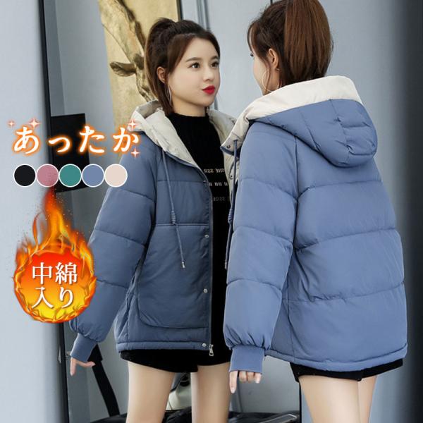 ■ダウンコート レディース 秋 冬 中綿コート ショットコート フード付 暖かい 軽い オフィス アウター 防寒対策 厚手 防風 ジャケット 通