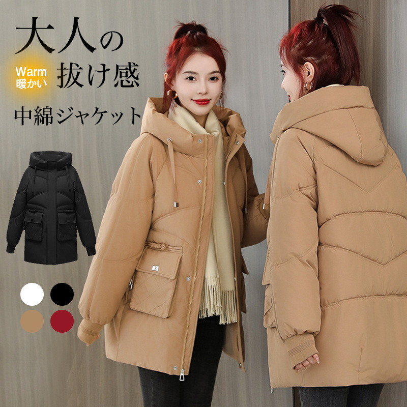 ■中綿ジャケット レディース 中綿コート 厚手 ロングコート 暖かい ダウンジャケット 体型カバー フード付き 秋冬 アウター 軽量