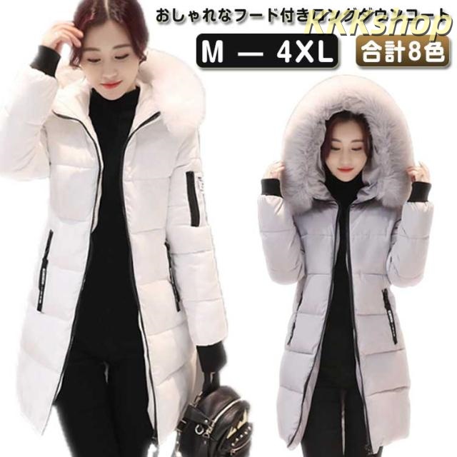 ■中綿ジャケット レディース 中綿コート 厚手 ロングコート 暖かい ダウンジャケット 体型カバー フード付き 秋冬 アウター 軽量