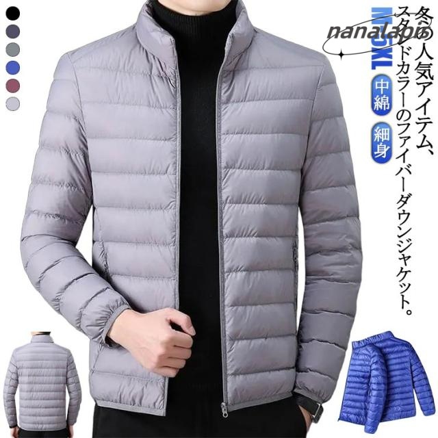 ■中綿ジャケット メンズ 軽量 ダウン風ジャケット 立て襟 細身 スタンドカラー ジャケット ライト 薄手 ファイバーダウン 防寒 保温 暖か