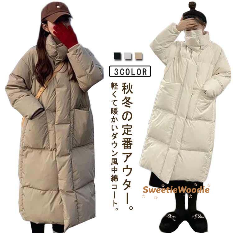 立ち襟 可愛い レディース アウター 冬 コート カジュアル スタンドカラー キルティング 中綿 冬 ダウンジャケット 秋冬 中綿コート ロング丈 ア