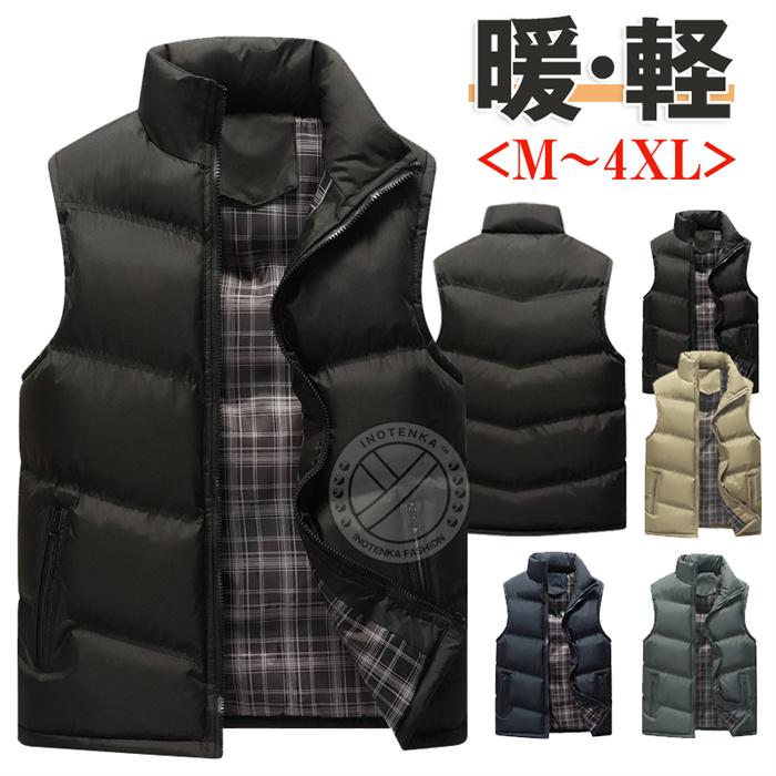 ■ダウンベスト メンズ 中綿ベスト 軽量 中綿入り チョッキ ジャケット スタンドカラー コート 春秋冬 暖かい 防寒着 フードなし LHT