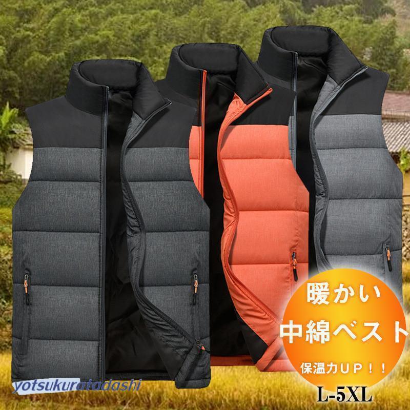 ベスト メンズ 中綿ベスト ダウンベスト スタンドカラー ダウンコート 中綿 軽量 厚手 暖かい 袖なし ジッパー 秋冬 防寒 アウター 立ち襟