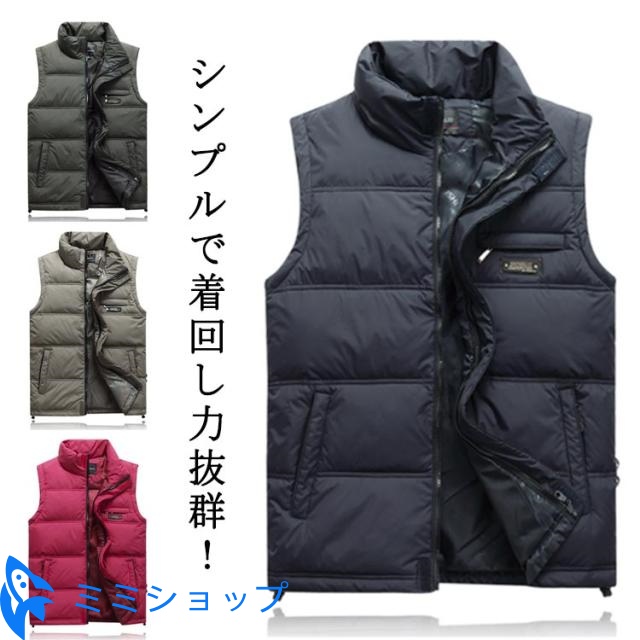■立ち襟 ダウンベスト ノースリーブジャケット カジュアルジャケット ショートコート ダウン90% メンズベスト スタンドカラー トップス 暖