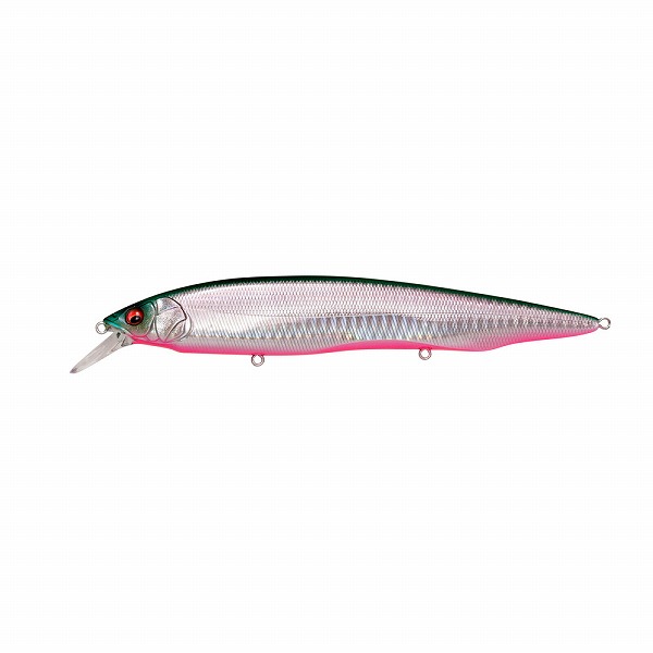 カナタSWは大型のベイトを捕食しているターゲットに絶大な効果を発揮するハイ・インパクトジャークベイトです。体高のある160mmのシルエットはインパクト抜群。なのに、引き抵抗は極めて軽く、テンポよくエリアをサーチするレスポンシビリティを兼備。ストレートリトリーブでは、強烈な明滅を伴うハイピッチ・ロールアクションでターゲットに強烈にアピール。なお、極限までシェイプアップしたスリムなフラットサイドフォーマットと、内蔵された「超高比重タングステン・トリプルオシレートシステム」は、逆風をものともしない圧巻のスーパーロングキャストを実現。スプーキーなモンスターフィッシュから警戒されない的確なロングディスタンス・アプローチを可能としています。スレンダーなカナタの魅力は、その超薄型ボディのみが放つ妖艶なナチュラリズム。従来のミノーには反応しなかったクレバーなビッグサイズが襲撃してくることです。
