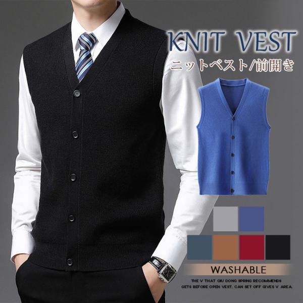 ■ニットベスト チョッキ ウール カーディガン メンズ アウター トップス ベスト 前開き 秋冬 カジュアル Vネック 春物 30代 40代 送料無料