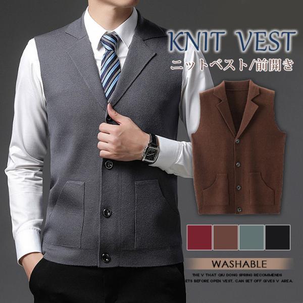 ■ニットベスト メンズ チョッキ かっこいい 紳士服 Vネック 前開き セーター トップス ビジネス オフィス 秋冬 きれいめ おしゃれ 送料無