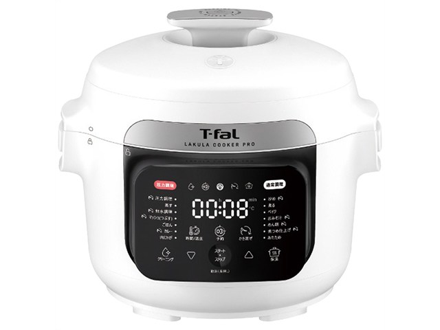 驚くほど、手料理がラクになるまぜてくれる自動調理鍋ティファールの大人気ラクラクッカー! 電気ケトルや取っ手が外れるフライパンなどでおなじみのティファールから電気圧力鍋[ラクラクッカープロ 自動調理鍋」!なんと「かき混ぜ機能」がついて、ラクさも美味しさもバージョンアップ♪鍋底から自動でまぜる「かきまぜパドル」鍋底から自動でまぜる「かきまぜ」機能搭載!計算されたティファール独自のパドル形状で、鍋の底から食材を返しながらしっかりとかき混ぜるので、焼きそばなど炒めものが、ほったらかしで驚くほどラクに完成!さらにスゴイのは圧力調理中もかき混ぜパドルが働くので、調味料や熱が均一に混ざり、しっかり味が染み込み、おいしく仕上がります。圧力料理の仕上がりレベルがUP!ラク簡単に作れる! - かんたん3ステップでおまかせ調理 食材を鍋に入れ、温度や時間を設定すれば、あとは自動で調理開始!ガス火調理と違って火加減調整など一切なし!キッチンにずっといなくても大丈夫だから、今まで料理にとられていた時間を有効活用できます。"圧力調理+かき混ぜ機能"で驚くほどラクに美味しく通常、圧力調理中は蓋も開けられないのでかき混ぜるなんて不可能‥。柔らかくはなるけれど、味の染み込みが今一つと言われる圧力調理も、かき混ぜ機能との合わせ技で煮物やビーフシチューも驚くほど美味しく仕上がります。かき混ぜがあるとなしでが大違い!圧力調理中にかきまぜるから、短時間でしっかり、しかも、まんべんなく味が染み込みます。混ぜてくれるから、驚くほど手料理がラクにポテトサラダは圧力調理でやわらかくなったジャガイモを、かきませパドルでつぶすので、下ごしらえが6分で完成。あとは具材や調味料を和えれば完成!冷凍食材も入れるだけ - 解凍も火加減も心配いらず冷凍食品も鍋に入れるだけで、解凍も火加減も心配いらず。冷凍食品の調理がもっと時短に便利になります。レシピブックには「冷凍プルコギ」や「照り焼きチキン」などのメニューも!忙しい日にも大助かり間違いなしです。お手入れもラクラク内なべは汚れがつきにくいセラミックコーティングで、食洗機対応可能!さらに蓋や内なべ、パッキングのニオイや汚れを蒸気の力で除去するクリーニング機能搭載。出来たてのアツアツが食べられる - スマート予約調理プログラム食材を入れて、予約開始後すぐに調理スタート。スマート予約調理*により調理後は食材に最適な温度を保ち、最後の仕上げで再加熱し、予約した時間にできあがり!帰宅時間を見込んでセットしておけば、できたてアツアツの料理を楽しめます。※スマート予約調理はすべてのレシピが対象ではありません。最大12時間の予約調理が可能。圧力調理のみ対応。もっと手間なく、もっとレパートリー豊富に。65品のレシピブック付き!おまかせ自動調理の幅が広がり、毎日の料理がさらに手軽に簡単に!