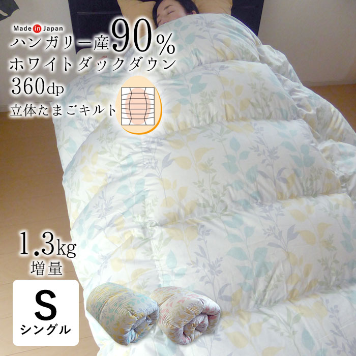 ■立体たまごキルト 羽毛布団 シングルロング 150×210 日本製 増量1.3kg ハンガリー産 ホワイトダックダウン90% 立体キルト 2270