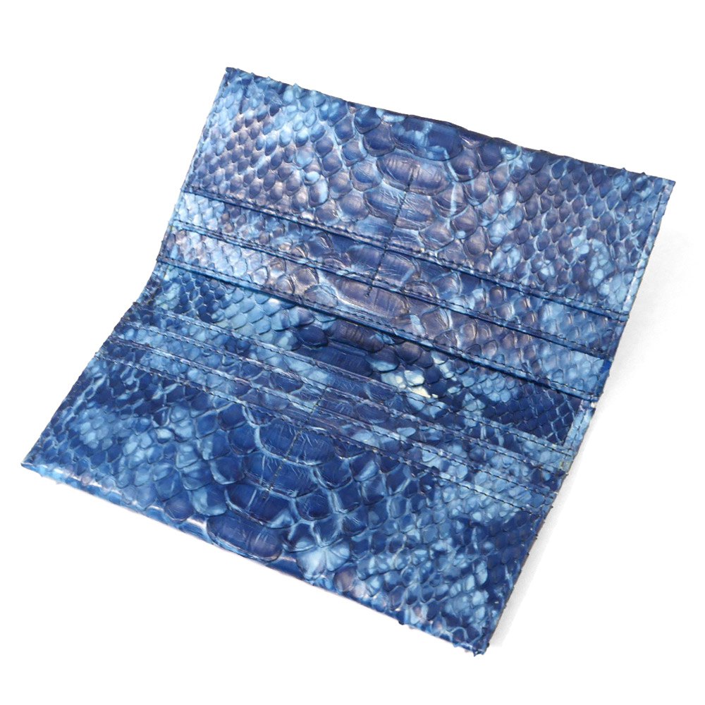 ■長財布 パイソン 財布 マチなし 小銭入れなし 薄型 / 本革 パイソン革 ダイヤモンドパイソン 群雲藍染め