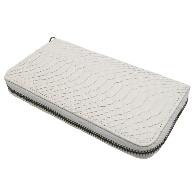 ■送料無料 白蛇 錦ヘビ ラウンドファスナー長財布 さいふ サイフ 錦蛇革・内側牛革使用 日本製 押し柄 メンズ レディース 縁起物 パイソン