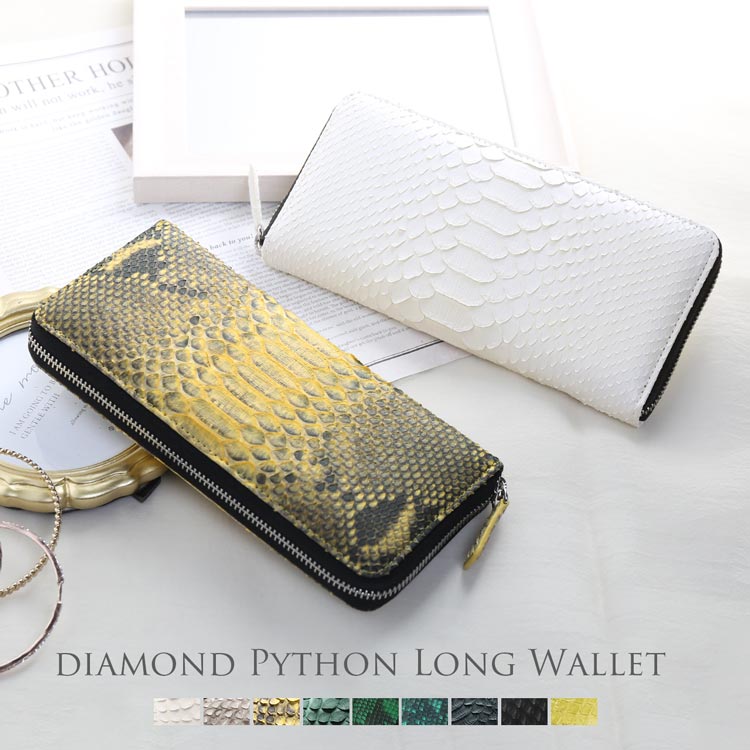 ■ダイヤモンド パイソン 長財布 レディース 一枚革 ラウンドファスナー 多機能(No.06000756)