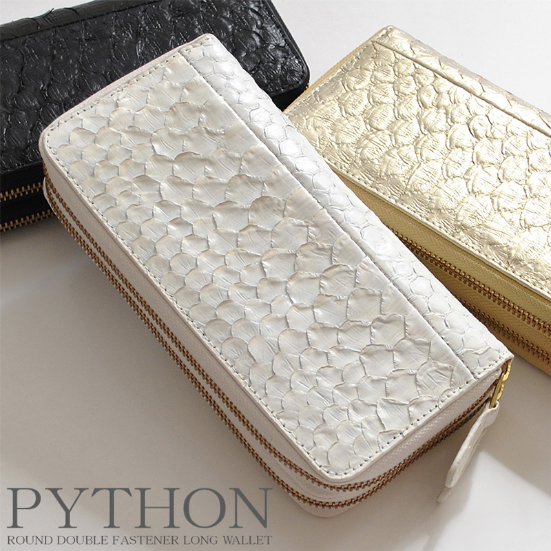 長財布 ラウンドファスナー メンズ レディース 財布 サイフさいふ 長札 大容量 蛇革 パイソン革 ヘビ革 本革 レザー 男女兼用 柄 日本製