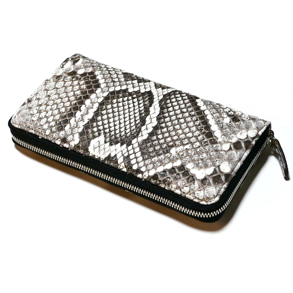 ■長財布 ラウンドファスナー財布 メンズ レディース 本革 パイソン モラレス マット ナチュラル