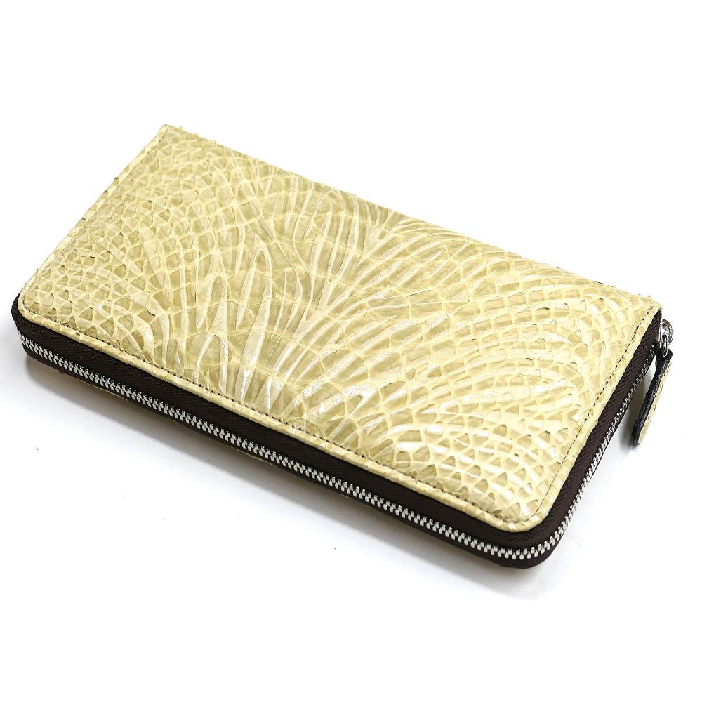パイソン 長財布 アイボリー 無双 本革 高級 エキゾチック ラウンドファスナー 大容量 メンズ レディース 蛇革