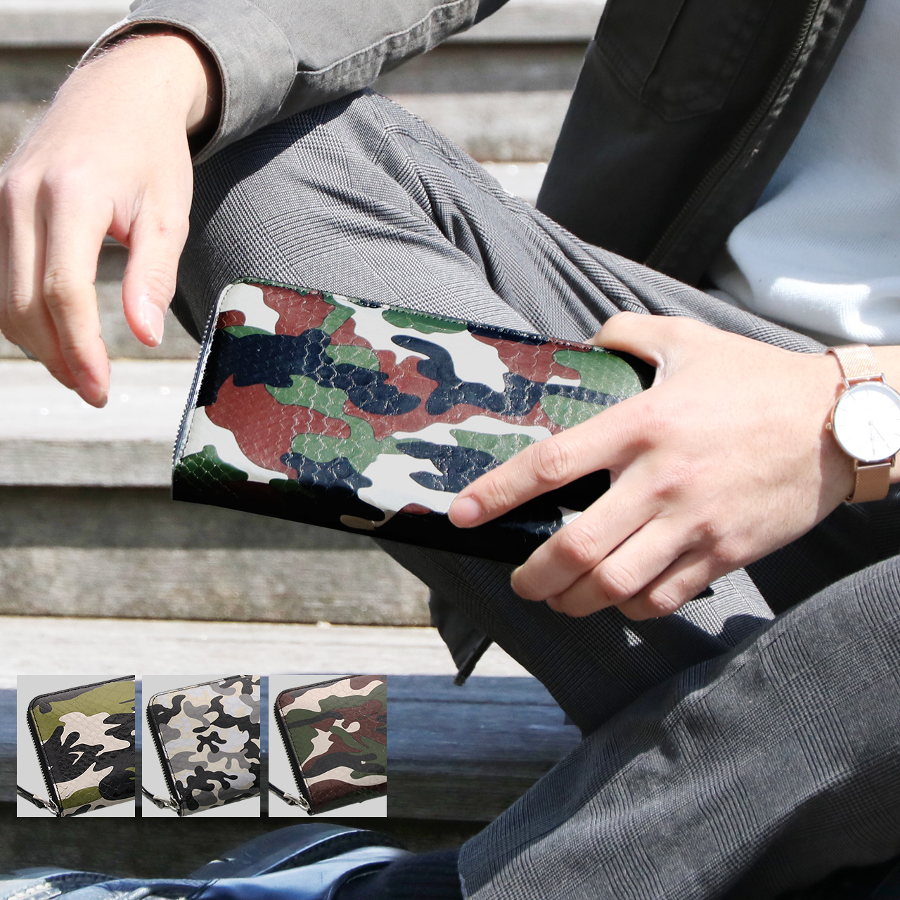 ■ダイヤモンド パイソン 長財布 ラウンドファスナー 迷彩柄 カモフラ メンズ カモフラカーキ/カモフラブラウン/カモフラグレー【ネコポス