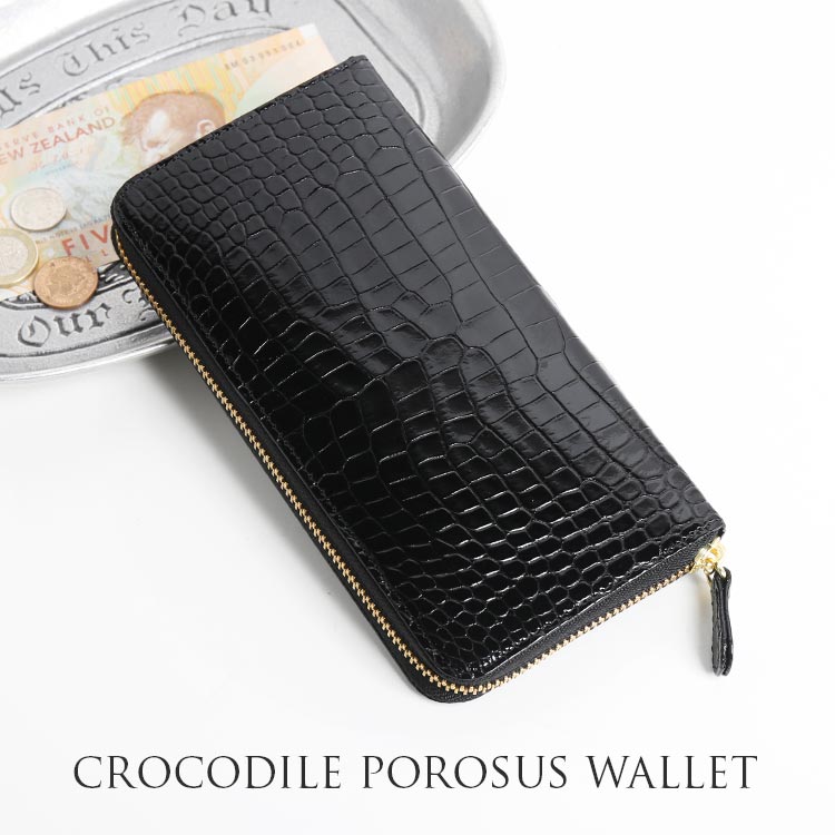 ●特長JRA/日本製/ラウンドファスナー/センター取り/通帳が入る●デザイン美しく輝くスモールクロコダイルで仕立てた長財布。大きく開くラウンドファスナー開閉で、内側の素材にもクロコダイルとパイソンレザーを使用したこだわりのデザイン。●素材海外高級ブランドなどでは『ポロサス』の名で知られるプレシャスレザー。フランスの高級ブランドのタンナーの皮革を使用。革には美しい光沢を放つシャイニング加工(グレージング仕上げ)を施しています。●スタイルセンター取りと一枚革の贅沢な仕立てが手元に最上級の高級感を演出してくれます。重量:約190g≪単位cm≫【サイズ】 横幅19/縦幅10/厚み2.5【素材】表側:スモールクロコダイル(イリエワニ)内装:スモールクロコダイル、パイソン、生地(内装のワイドポケット内部、小銭入れ内部、カードホルダー内部に生地を使用しています。)【原産国】日本製【内側収納】小銭入れ×1紙幣入れ×2カードホルダー×12ワイドポケット×2【外側収納】なし【開閉】ラウンドファスナー式