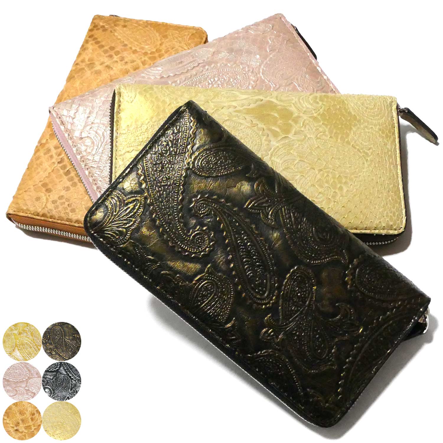 ■ラウンドファスナー長財布 パイソン 財布 ファスナー長財布 / パイソン革 蛇革 ヘビ革 / ダイヤモンドパイソン ペイズリー