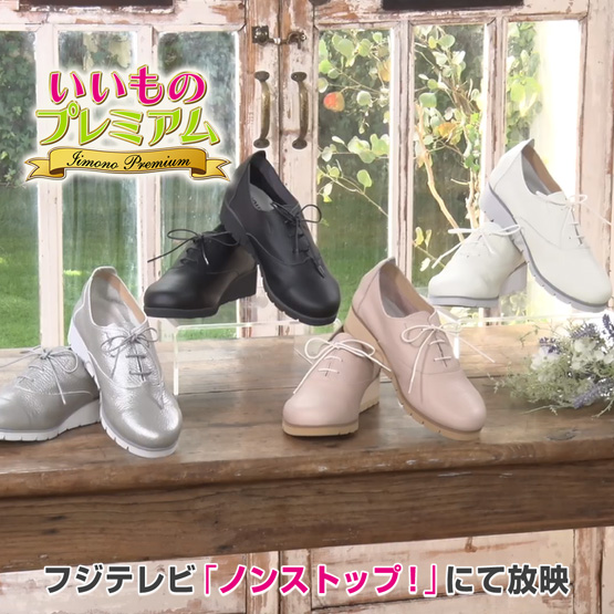 フジテレビ『いいものプレミアム』で放送3/26放送時【2,000足以上】販売!ただ今大ヒット中「きちんと感」と「履き心地のよさ」を兼ね備えた、大人の女性のためのレザースニーカー!ウェッジソールタイプで脚長効果も!人気のフィグリーノレザースニーカーがウェッジソールタイプに!スニーカーでお出かけしたいけれど、カジュアルなタイプだと服選びが難しい…。そんな時に大人女性に人気なのが『フィグリーノ レザースニーカー』。牛革使いだから、スニーカーなのにきちんと感があって、大人のファッションにも合わせやすいんです。しかも歩きやすいから、普段の街歩きはもちろん、長く歩きたい時や旅行などにもピッタリ!さらに今回のモデルは、あと1cmヒールがあればという声にお応えして待望のウェッジソールになって新登場!◎カラーは定番のブラック、足元がきらりと光るパールホワイト、大人かわいいピンクベージュ、ブルーがかったおしゃれなペールグレーの4色です。『フィグリーノ レザースニーカー』はどこがスゴイの?◎とにかく履き心地がいい!◎とにかく疲れにくい!◎大人のエレガントなファッションにも合わせやすい。【今回のポイント】あと1cmソールがあれば…。そんな声にお応えし、今回モデルは3.5cmのウェッジソールタイプにリニューアル!足長に見えるのにフィグリーノの履き心地の良さは健在。手間暇かけた特別な牛革を使用!足を入れると、レザーとは思えないやわらかさにうっとり。そんな履き心地のよさの秘密が、フィグリーノのために特別に手間ひまかけて作られた日本の牛革。幅広さんや外反母趾にお悩みの方にもおすすめで、届いたその日から足に馴染んでフィットします。【日本の革】タンナーと独占契約を結び完成高い技術を持つ兵庫県たつの市のタンナーと独占契約を結び、何度も試作を繰り返し完成させた日本の革を使用。【職人技】完成までに18工程も通常の革※は完成までの工程は12ほどですが、今回の革はなんと18工程!丁寧に揉んだり、伸ばしたり、職人が手間と時間をかけることで、しっかりとした強度を持ちながら、しなやかで、やわらかい革に仕上げました。※メーカー従来品【1枚仕立て】包み込むような履き心地軽く、やわらかな牛革のよさをそのまま味わっていただきたいので、裏張りをしない1枚仕立てにしたのも職人のこだわり。締め付け感が少なく、すっぽり足を包み込み、靴が足に合わせてくれるような履き心地です。【シュリンク加工】キズがつきにくいおしゃれな風合いアッパーの牛革表面には、きめの細かい凹凸のシュリンク加工を施しました。キズがつきにくく、ついても目立ちにくく、高級感のある風合いがおしゃれです。長く歩いても疲れにくい!実際に歩いてみると、弾むような軽さに楽しくなります。重さは約190g(23cm・片足)とパプリカ1個ほどの驚くような軽さ。さらに中敷き、ソールにもこだわりの機能を持たせ、疲れにくさを追求しました。【中敷き】足当たりのよい低反発素材を採用・体重がかかるかかと部分に低反発素材を採用。着地の衝撃を軽減します。【ソール】屈曲性がよく歩きがスムーズ・靴底にスリットを入れることで、しなやかに曲がる屈曲性も実現。着地から蹴り出しまでの動きがスムーズで、足の動きにフィット。パカパカしにくく、ムダな力が入りにくいから疲れにくい!服を選ばず、エレガントな装いにも合う!デザインはシンプルだから、さまざまなファッションに合わせやすくおしゃれ。ワンピースやワイドパンツなどエレガントな装いにもマッチし、スニーカーでは入りにくいレストランにもこれなら入れます。・ワイズが4E相当なのにすっきり細身に見えます。 ・今回からサイズ展開が広がりました!21.5cm〜25cmまで0.5cm刻みでご用意。
