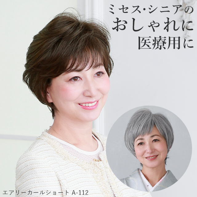 ■ミセスウィッグ かつら エアリーカールショート ショート ミセス シニア 和装 着物 フルウィッグ オールウィッグ ショートウィッグ 医療