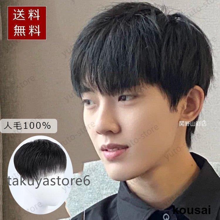 ■ウィッグ メンズ 部分 人毛 ウィッグ 自然 ショート 短髪 かつら ショートウィッグ メンズウィッグ 医療用 薄毛 脱毛症 増毛 分け目 つむ