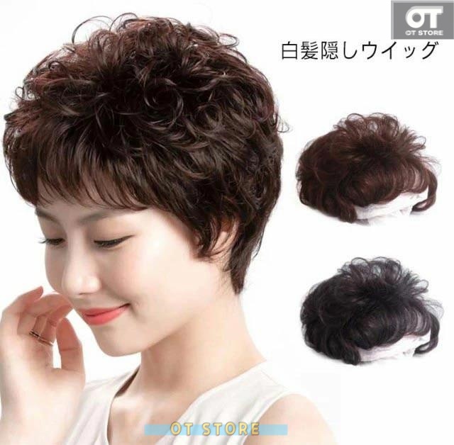 ポイントウィッグ 部分ウィッグ ショート 人毛100% ピース パーマ カールウィッグ 白髪隠し 薄毛対策 ボリューム 白髪かくし 地毛かくし ボリュームアップ