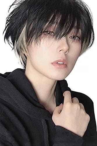 ■FESHFEN ウィッグ メンズ かつら ショート インナーカラー フルウィッグ 男装 黒 男性 原宿 イケメン ハンサム 自然 小顔 耐熱
