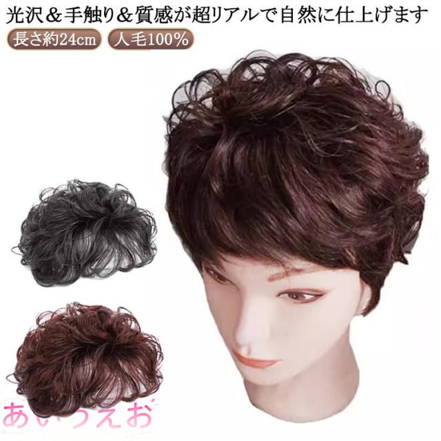 ■ポイントウィッグ 部分ウィッグ ショート 人毛100% トップピース パーマ カールウィッグ 白髪隠し 薄毛対策 ボリューム 白髪かくし 地毛