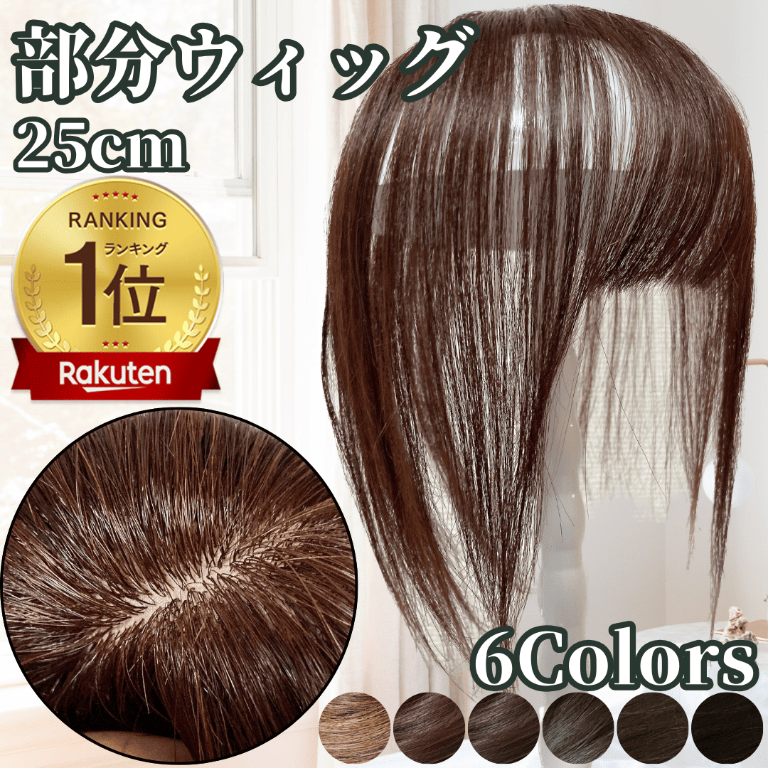 前髪ウィッグ 自然 部分ウィッグ かつら20cm 人毛100% トップピース レディース ショート ミディアム 頭頂部 つむじ 分け目 トップカバー ヘアピース