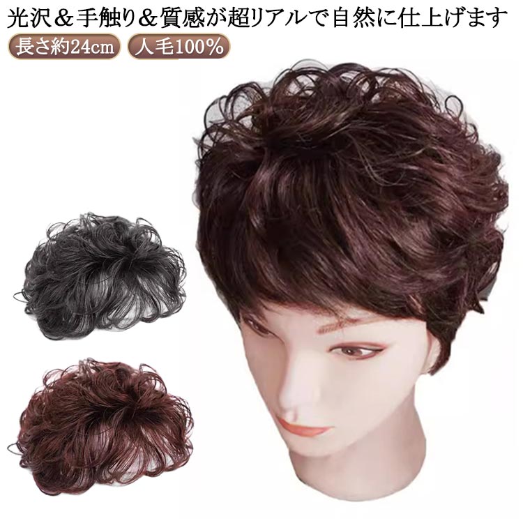 ■ショート ポイントウィッグ 部分ウィッグ 白髪隠し トップピース パーマ カールウィッグ 人毛100% 薄毛対策 ボリューム 白髪かくし 地毛