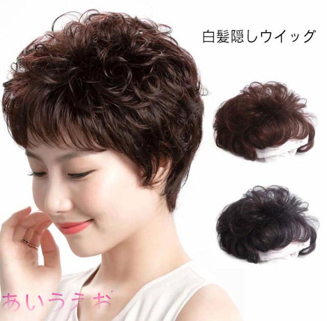 ■ポイントウィッグ 部分ウィッグ ショート 人毛100% トップピース パーマ カールウィッグ 白髪隠し 薄毛対策 ボリューム 白髪かくし 地毛