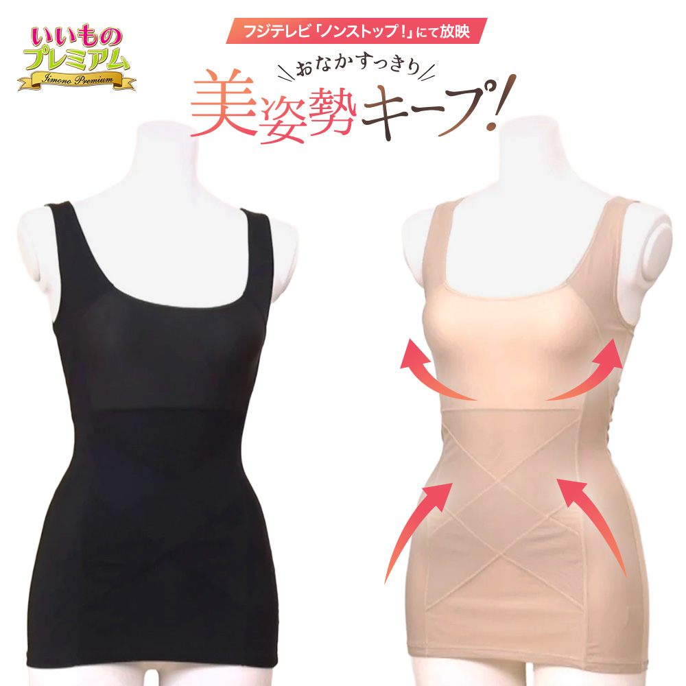 フジテレビ『いいものプレミアム』で放送2/20放送時【3,000枚以上】販売!ただ今大ヒット中肩甲骨の引き寄せとお腹の引き締め、ダブルの補整がパワーアップ!美姿勢をキープして、動きやすい。※メーカー直販価格9,980円パワーアップした姿勢インストラクターシリーズの最強モデル! 背中が丸まった姿勢では、元気がなさそう、老けて見られるなど、印象が悪くなりがち。とはいえ背筋がシュッと伸びた美姿勢をキープするのは難しい…。そこでおすすめなのが、服の下に着ることで美姿勢に見える『姿勢インストラクター アクティブコアDouble』。美姿勢キープに重要とされる「肩甲骨」に着目した人気補整インナーシリーズの最強モデルで、なんと肩甲骨の引き寄せと、お腹の引き締めのダブルの機能がパワーアップ。着た瞬間から、姿勢が整い、ぽっこりお腹や背中のハミ肉もスッキリ補整!Tシャツ1枚でも自信が持てます。パワーアップポイント◎背中にクロス状に配置したパワーネットの一部を2枚重ねにしたダブル仕様に強化。よりラクに肩甲骨が引き寄せられるようになり、美姿勢キープがしやすくなりました。◎下腹をへこませるパワーネットの一部も2枚重ねにしたダブル仕様に強化。従来モデルより下腹がしっかり押さえられ、ポッコリお腹の引き締めもパワーアップ。◎肩まわりのアームホールを大きく広げたつくりに。肩がよりラクに、動かしやすくなりました。◎バスト部分にはパワーネットを使わず、さらにストレッチ素材の面積をアップ。胸がラクになり、つぶれにくくなりました。◎丈を長めにすることで、ヒップまでしっかりカバー。めくり上がりにくくなったのもうれしいポイント。77歳(※取材時)の今も現役のフィットネスインストラクターとして活躍する開発者・青木美樹さんによる美姿勢の秘訣とは姿勢をよくするには、肩甲骨が一番大事。肩甲骨を寄せることで自然と姿勢をよく見せることができます。姿勢がいいと若々しく見えますし、やっぱり元気の秘訣ですね。60代の頃より姿勢の維持は大変になりましたが、このインナーで助けられています。※個人差があります着れば、美姿勢をキープ!『姿勢インストラクター アクティブコアDouble』なら着ればOK!背中に配したクロス状のパワーネットの力により肩甲骨が引き寄せられ、自然に胸が開き、丸まっていた背中がシャキッと伸びて美姿勢に。※個人差がありますポッコリお腹も、なんとかしてくれる!姿勢がよくなると、それだけでお腹も伸びてすっきりしますが、さらに骨盤を立たせるためにお腹まわり360度にもパワーネットを配置しました。美姿勢のキープ力も高まり、ポッコリお腹がスッキリ見えます。美姿勢 & 補整力を強化しながら動きやすい!補整下着というと、ガチガチに固めるものが多いのですが、これは「肩甲骨」と「骨盤まわり」以外はストレッチ性の高い生地を使用するなど、緩めの設計に。ノンワイヤーのブラジャーと合わせて着ると、動きやすく、ラクに着続けられます。着ているほうがラクだから続けやすい!今回の最強モデルは、「ダブルの補整力の強化」と「動きやすさ」という相反する機能を追求。そのために、パワーネットの強度や縫製等にこだわり何度も試作を重ねました。美姿勢をキープして、お腹・背中のハミ肉をスッキリ!しかも「着ているほうがラク!」ということを改めて実感できる最強モデルです。レディースはタンクトップタイプで、カラーはブラックとベージュ。サイズはS〜3Lまで幅広くご用意しました。さらに、メンズ用もご用意!カラーはブラックとベージュ。サイズはS〜3Lです。