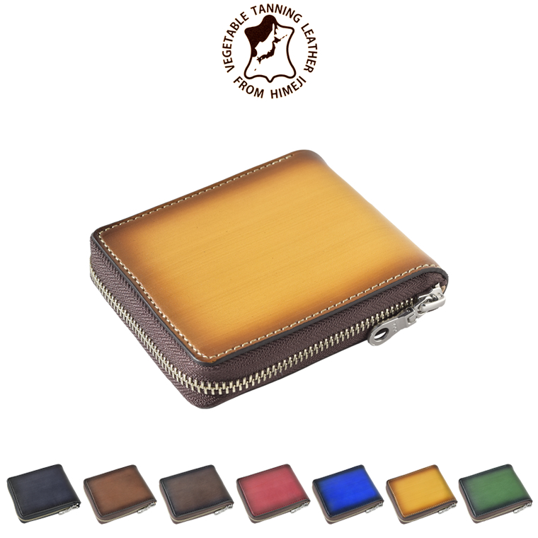 ■手染めラウンドジップミドルウォレット 手染め 財布 姫路レザー 革 本革 牛革 おしゃれ メンズ レザー LEATHER 日本製 小銭入れ 札入れ Y