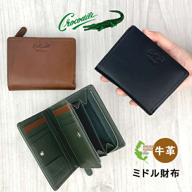 ■財布 二つ折り財布 メンズ ブランド 6cm084 Crocodile クロコダイル リプロ ミドルウォレット 二つ折財布 財布 本革 牛革 革 レザー 小