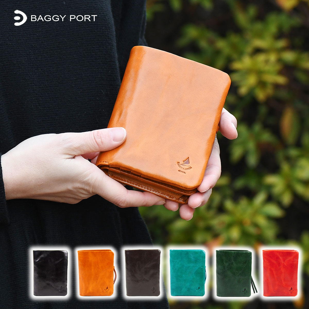■二つ折り財布 ハーフウォレット ミドルウォレット 縦型 タンポナート イタリアンレザー BAGGY PORT バギーポート 本革 牛革 革財布 袋縫