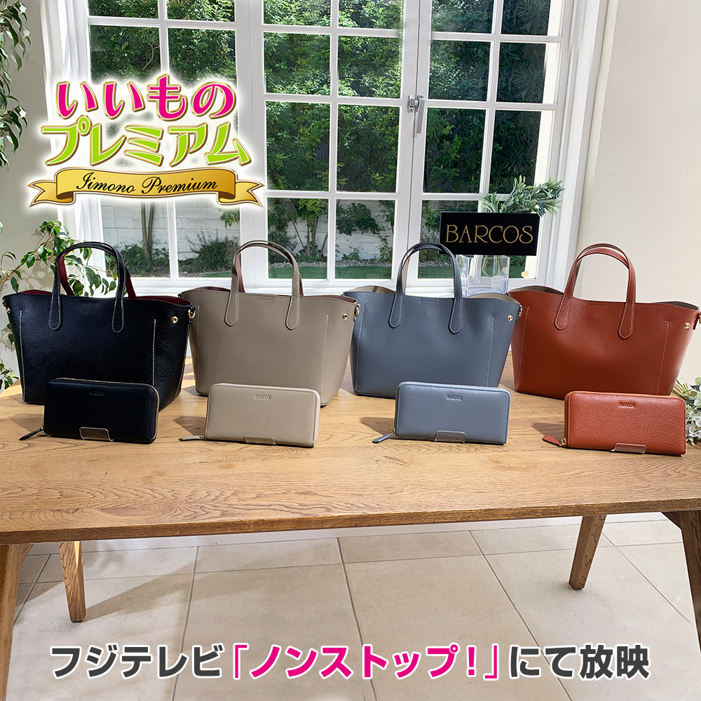 注目のジャパンブランド「BARCOS(バルコス)」牛革バッグ&長財布のセット!バルコスの牛革バッグ & 長財布セット!日本のバッグブランド"バルコス"の牛革バッグと長財布のセット!本革だから高級感があり、サイズ感もちょうどいい。牛革バッグは軽く、使いやすく、付属のショルダーストラップを付けると肩に掛けたり、斜め掛けも可能。お出かけにぴったり。バルコス(BARCOS)とは…1991年、鳥取県倉吉市で創業した日本のバッグブランド。2007年、イタリア・ミラノで開催される世界最大規模の皮革見本市「ミペル(MIPEL)」で日本ブランドとして初のデザイン賞を受賞し、その後も2回受賞。さらにニューヨークの展示会「コーテリー(Coterie)」、パリの展示会「プルミエールクラス(Premiere Classe)」にも出展。優れたデザイン力と商品力が高く評価され、世界35か国からオーダーがきた実力派ブランドです。バッグも長財布も牛革を使用!高級感があって、しかも柔らかいから、しなやかに手に馴染んで持ちやすい。さらに独特な風合いのシワを作り出すシュリンク型押し加工を施しました。キズに強く、キズが付いても目立ちにくいので、本革ですがガンガン普段使いできます。【牛革バッグ】使いやすいトートタイプ、しかも形が変わる!『牛革バッグ』は台形のトートタイプで、重さがおよそ530g!本革なのにこの軽さは嬉しい。大きすぎず小さすぎず、小柄な方もバランス良く持てるちょうどいいサイズ感も使いやすい。しかも両サイドのボタンを留めると、キュートなスクエアバッグに変身!ショルダーストラップ付きで斜め掛けもできるから、さまざまなシーンで活躍します。◎入れ口がガバッと大きく開くので、内部が見やすく出し入れしやすい。必要なものがしっかり入ります。◎トートでも中央部にファスナーがついたあおりタイプなので、ファスナーを閉めると防犯上も安心。◎あおりタイプは両側に大きなポケットがあるので、そこにスマホやハンカチを入れておけばサッと取り出せます。◎ファスナー内部にもファスナーポケットとオープンポケット付き。◎ファスナーのサイドが空いているから、ここに500mlペットボトルが縦に入るのも便利です。〈形が変わる!〉トートから高級感あるスクエアバッグへ形が変わるのは注目!ホックを留めるとよりコンパクトになって、少し改まったシーンでも活躍します。〈ショルダーストラップ付き〉付属のショルダーストラップを付けるとショルダーバッグとしても使えます。両手が開くから、お子さん連れでの買い物や荷物が増えたときに便利。斜め掛けしても可愛いですよ。【長財布】ラウンドファスナー式で、内部も使いやすい!バッグとお揃いの牛革を使用した『長財布』は人気のラウンドファスナータイプ。ガバッと大きく開いて内部が見やすく、出し入れラクラク。レジ前でモタモタしたくない方におすすめ!何よりバッグとお揃いだとスタイリングに統一感が生まれ、センスよく感じます。〈内部仕様〉◎オープンポケットが5つあり、お札とレシートなどを分けて収納可能。◎中央の小銭入れはファスナー付きで、小銭がこぼれにくい。◎カードは8枚収納できます。◎内側の色もバッグと同じ配色使い。ここまでこだわっています。