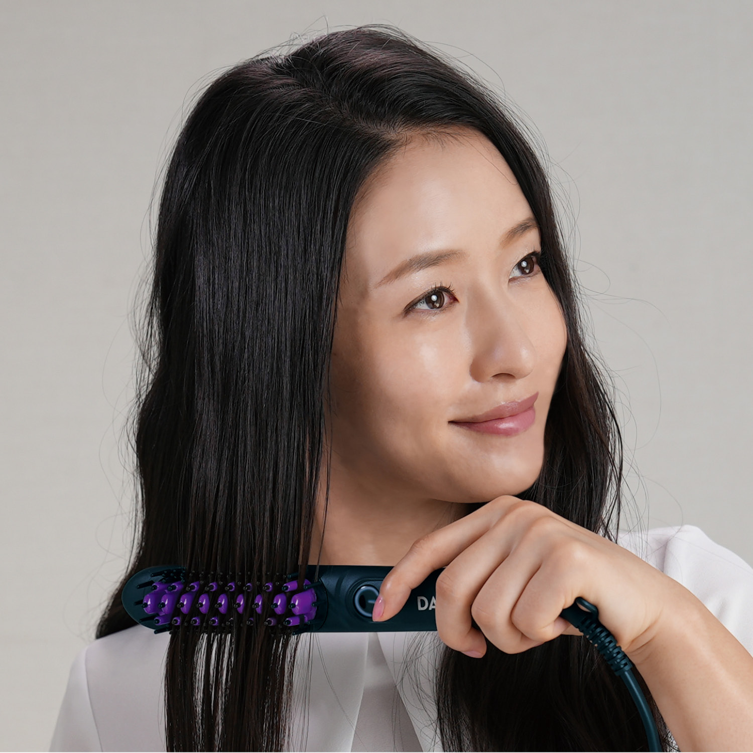 ブラシ感覚でとかすだけ!とにかく時短!ストレートからボリュームアップまでこれ1本。うねり、広がり、パサつきなど髪のお悩みにも!とかすだけで簡単にまとまる!ブラシ型へアアイロン髪がパサついたり、うねったり、広がったりとつきない髪のお悩み。また、30代、40代になって、急にクセが出て、髪がまとまりにくくなったという方も少なくありません。でも忙しい朝に髪を濡らしてブローするのは時間がかかって大変。そこでオススメなのが『ダフニ nano』。今注目のブラシ型ヘアアイロンの細身モデルで、小回りが利くのでショートヘアやミディアムヘアの方も使いやすい!とかすだけで髪が簡単にまとまります。根元の立ち上げ、トップのボリュームアップも時短で簡単です。『ダフニ nano』はどこがスゴイの?◎ブラッシングするだけで寝癖直しが簡単!◎トップのボリュームアップも簡単!◎髪へダメージを与えにくい構造〈ダフニシリーズの細身モデル〉世界30カ国以上※で人気の「ダフニシリーズ」は、クセのある髪が数秒でストレートになる動画がInstagramで注目され、世界的に有名に!中でもこの『ダフニ nano』はブラシが細身で小回りが利くのでボリュームアップや顔周りのアレンジもこれ1本で簡単。※メーカー調べとかすだけでツヤツヤのストレートに!ドライヤーやヘアアイロンを使ってキレイなストレートヘアに仕上げるのは難しいもの。ブラシと熱源が一体化した『ダフニ nano』なら、ただとかすだけでテンションをかけながら熱を与えられるので、あっというまにサラサラツヤツヤのストレートに!見えない後頭部もラクにできちゃいます。【ピンの配置に秘密が】ジグザグに配置されたピンで髪をしっかりキャッチ。ブラシ感覚でとかすだけで程良いテンションがかかります。また、髪がブラシ面に均一に広がることで熱が行きわたるように設計されています。根元から熱を与えられる!きれいなストレートを作るには、毛先だけでなく根元から熱を与えてまっすぐにすることが重要。【ダフニ nanoなら根元から差し込める!】◎先端ピンをクッション加工に!熱くなるのは紫色の部分のみ。黒色部分は熱くなりません。ブラシ先端の黒いピンは押すと沈みこみます。熱源が直接地肌に当たりにくく、でも根元から熱を与えられるので、クセをしっかり伸ばせます。トップのボリュームアップも簡単!難しいトップのボリュームアップも、根元まで差し込めるから簡単!全体を毛流れに逆らってとかすだけで根元から立ち上がります。トップ部分は持ちあげて根元から差し込めば、さらにフワッと!難しいテクニックも必要ないので簡単&時短です。髪へダメージを与えにくい!ダフニシリーズは熱が逃げやすいブラシ型だから髪を乾燥させすぎない構造になっています。また、ダフニシリーズの温度設定は、ダメージを与えにくく、ストレート効率の良い適温をメーカーが研究し、約185度に。一気にストレートになる温度でも、挟まないブラシ型だから髪が熱くなりすぎないんです。