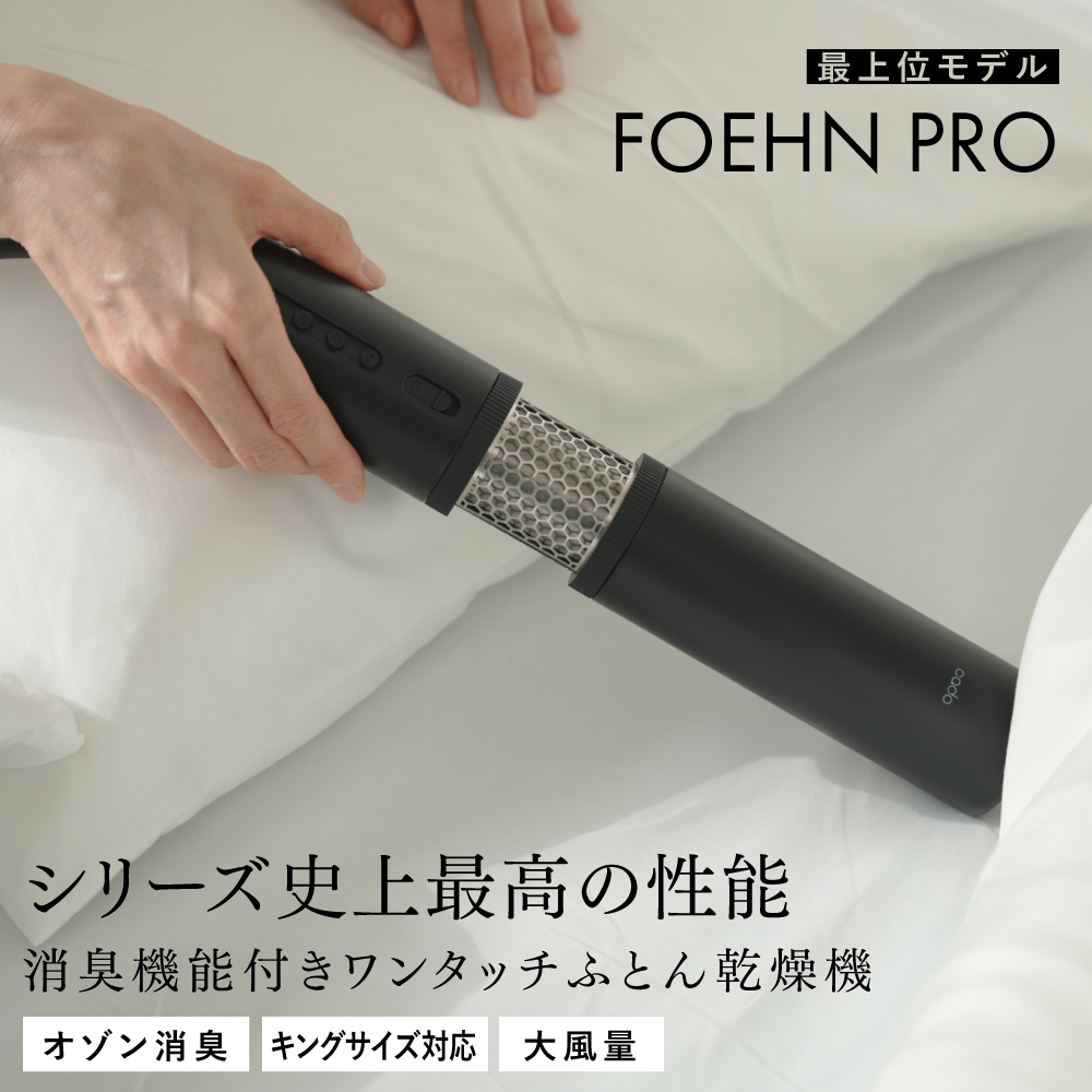 cadoのふとん乾燥機「FOEHN PRO」は、コンパクトなのに驚くほどパワフル。 オゾン機能の強化により、ニオイだけでなく菌までしっかり除去。さらに急速モード搭載で、キングサイズふとんまでふっくら乾燥可能です。 静音モードもあるため夜間の使用も気兼ねなく、365日快適な眠りをサポート。 デザイン性の高いスティック型で場所を取らず、メンテナンスも簡単です。毎日の睡眠をもっと快適で清潔にしたい方に強くおすすめします! 商品の特徴: ●【オゾン除菌×強力消臭】従来比2倍のオゾン量で、気になるニオイや寝具の雑菌も徹底対策。 ●【パワフル送風×静音設計】風量50%UP+静音モード搭載で、夜間も安心。キングサイズまでふっくら乾燥。 ●【3つのモード搭載】「あたため」「乾燥・ダニ対策」「送風」で一年中活躍。 ●【世界最小級&軽量設計】片手で持てるコンパクトボディ。収納もスムーズ。 ●【高性能なのに省エネ】最大620Wの低消費電力設計で、毎日使っても安心。 ●【お手入れ簡単】取り外し式フィルターはワンタッチで清掃可能。